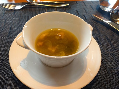 スープ(2種類から選ぶ)→ あさりと春キャベツのブイヨンスープ